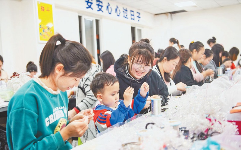 3月9日,九龍坡區(qū)華巖鎮(zhèn)民安華福社區(qū)“雙更”就業(yè)基地的“巧手夢工坊”內(nèi),女工們正熟練地工作。