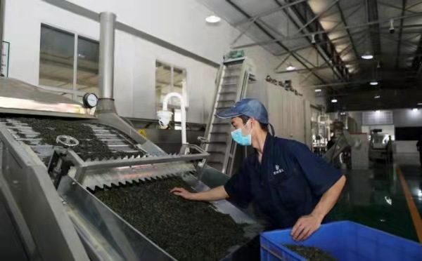 工人在生產(chǎn)車間查看春茶的成色。陳仕川攝