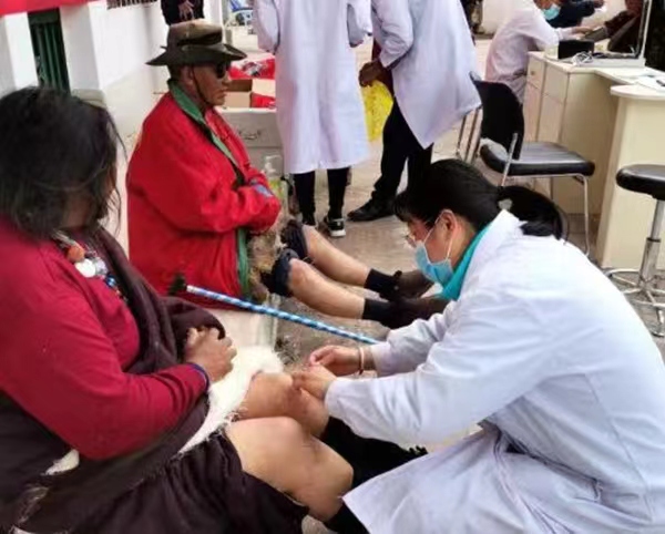 芒康地處高原地區(qū),受氣候和生活習(xí)慣的影響,風(fēng)濕、骨關(guān)節(jié)疾病患者群分布比較廣泛,這種疾病一般病史長(zhǎng)、預(yù)后差、致殘率高,83歲的卓嘎拉姆便是飽受其困擾者之一。