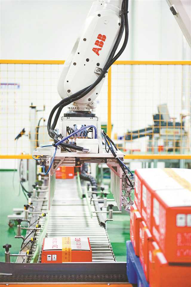 通過技改后,榨菜實現(xiàn)智能化加工。圖為涪陵榨菜集團的現(xiàn)代化生產(chǎn)線。
