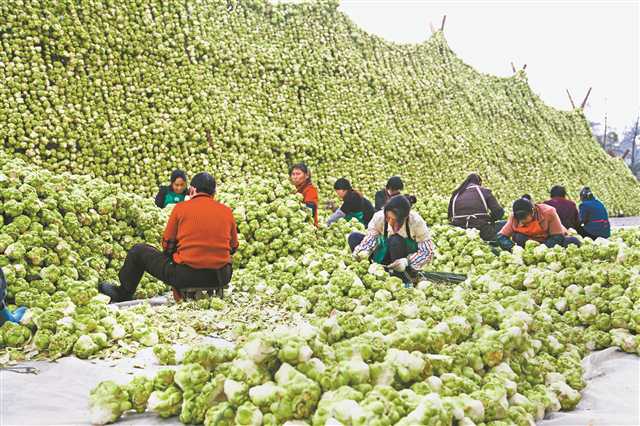 二渡村村民對采收后的青菜頭進行初加工。(本版圖片均由受訪者提供)