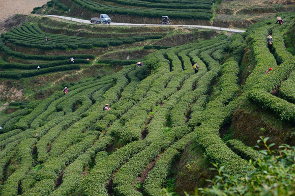 洪安鎮(zhèn)溜沙村茶葉基地采茶工。魯詩勤攝