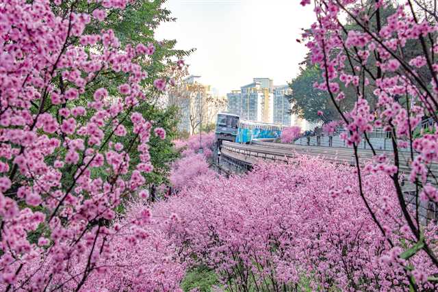 李子壩軌道穿樓—三層馬路—貳廠文創(chuàng)園—鵝嶺公園—佛圖關(guān)公園—半山崖線步道—開往春天的列車—重慶天地及天地湖。