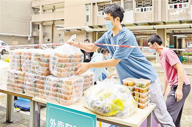 “送快遞是最惱火的!焙稳鹛寡,“房客”們每天的包裹會放在隔離點的大門口,消殺后由專人統(tǒng)一轉(zhuǎn)運到宿舍樓前的指定點,然后他們一一核對信息,把同一層樓的包裹分揀到一堆,再送到各個房間門口。