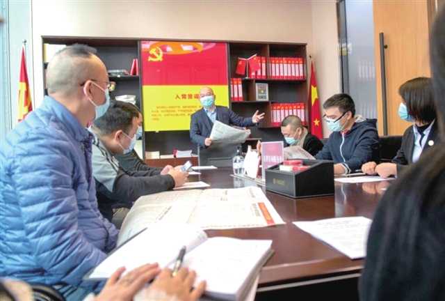 江北城街道金融城3號(hào)樓宇黨群服務(wù)站內(nèi),街道組織非公企業(yè)的黨員代表學(xué)習(xí)