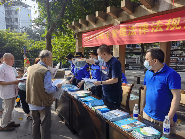 活動(dòng)現(xiàn)場(chǎng),執(zhí)法大隊(duì)工作人員通過(guò)設(shè)置咨詢(xún)點(diǎn),向居民群眾發(fā)放了《重慶市生活垃圾管理?xiàng)l例》、《重慶市公共場(chǎng)所控?zé)煑l例》以及世界水日、植樹(shù)造林、違法建筑治理、十年禁漁、生態(tài)環(huán)境保護(hù)等相關(guān)宣傳資料。并與居民們零距離交流法律常識(shí),耐心解答與居民日常生活息息相關(guān)的生活垃圾分類(lèi)、違法搭建、毀綠種菜、水污染防治等問(wèn)題,引導(dǎo)居民自覺(jué)遵守各項(xiàng)法律法規(guī),共同建設(shè)美麗家園。
