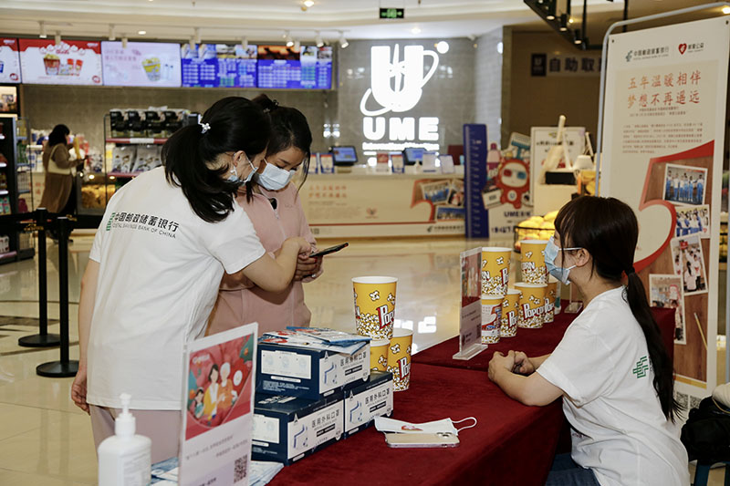 3月21日下午,郵儲銀行重慶分行在龍湖時代天街UME國際影城電影院門口開展了“郵愛公益”現(xiàn)場捐贈活動,吸引不少群眾前來捐款。