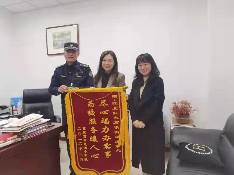 3月22日,徐悲鴻小學(xué)的曹校長帶著學(xué)生們的感謝信來到大石壩街道辦事處,對街道織密學(xué)!鞍踩W(wǎng)”,構(gòu)筑通行“防護(hù)欄”工作表達(dá)感謝。