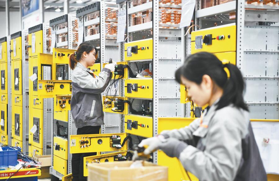 3月22日,在位于巴南經(jīng)濟園區(qū)的重慶眾恒電器有限公司生產(chǎn)車間,工人在組裝高低壓成套開關設備!〗衲暌詠,巴南經(jīng)濟園區(qū)堅持防疫生產(chǎn)“兩手抓”,質量、效益進一步提升。據(jù)悉,1—2月園區(qū)累計實現(xiàn)規(guī)模工業(yè)產(chǎn)值45.1億元,同比增長7.4%;累計完成固投5.6億元,同比增長136.4%。