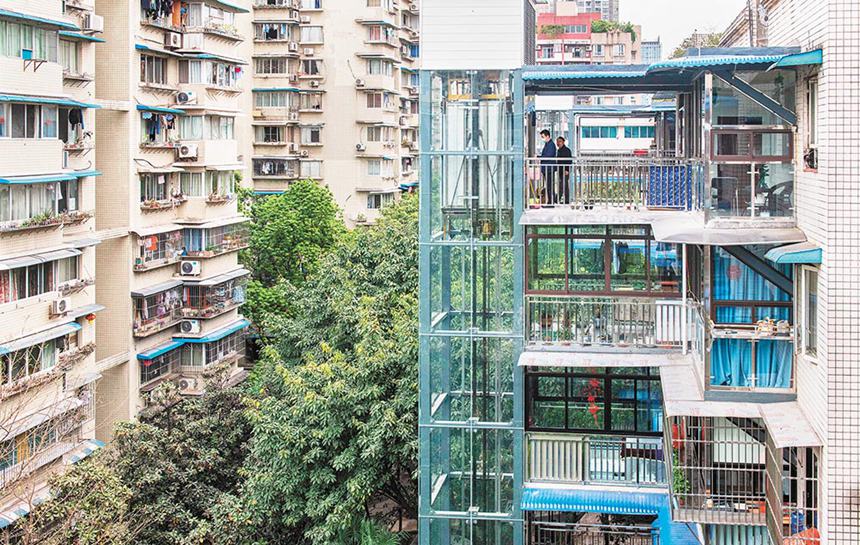 3月25日,江北區(qū)石馬河街道陽光家園小區(qū),居民搭乘剛投用的電梯。目前,江北區(qū)先后對(duì)19個(gè)老舊小區(qū)實(shí)施了包括電梯加裝、外立面整治、老舊管線更新等項(xiàng)目在內(nèi)的改造,惠及居民超1.6萬戶。今年,該區(qū)還將完成老舊小區(qū)改造項(xiàng)目3個(gè),總建筑面積63.57萬平方米。記者 崔力 攝/視覺重慶