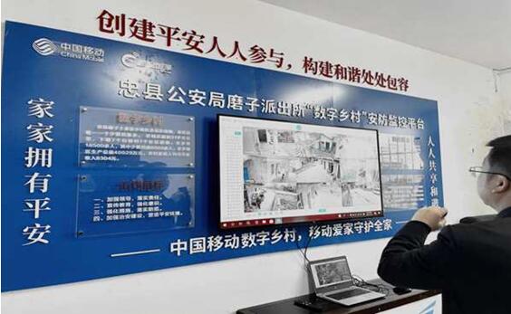 在忠縣,磨子鄉(xiāng)民警正利用中國移動(dòng)“數(shù)字鄉(xiāng)村”安防監(jiān)控平臺(tái)進(jìn)行鄉(xiāng)村安全監(jiān)測管理。重慶移動(dòng)公司供圖
