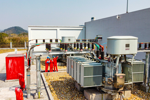 電力工人檢查變壓器工作情況。王瑤攝