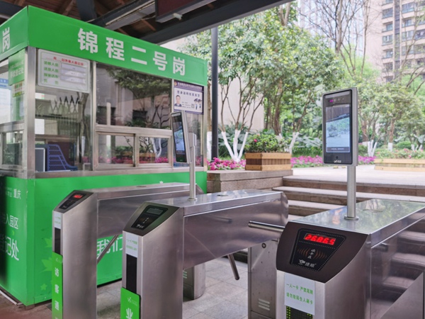 萬(wàn)科錦程門(mén)崗處升級(jí)人臉識(shí)別設(shè)備。萬(wàn)科物業(yè)供圖