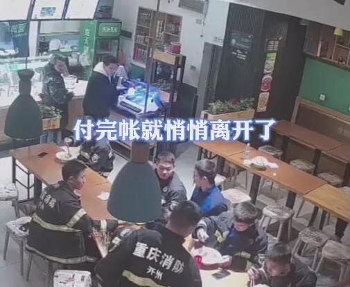 11月24日23時許,重慶市開州區(qū)消防救援支隊云楓消防救援站的八名消防員出完警,在一家面館用餐。一名陌生男子為他們悄悄買水后悄悄離開,這溫馨的一幕,被面館里的視頻監(jiān)控記錄了下來。