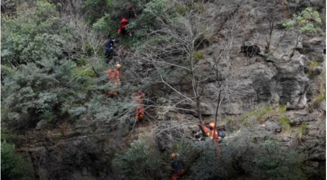中途有多處垂直陡峭區(qū)域,非常危險(xiǎn)。消防指戰(zhàn)員立即使用攜帶的繩索等裝備,搭建安全通道,為兩名被困測繪員身上套上腰結(jié),緩慢通過危險(xiǎn)區(qū)域。全部人員于中午12點(diǎn)成功撤退至山腳安全地帶。