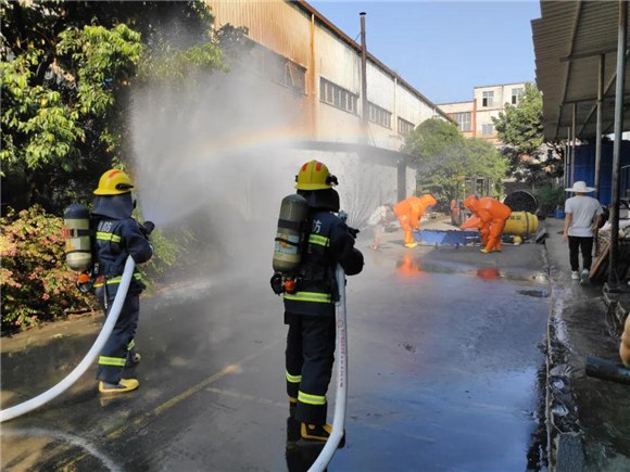 大足消防開(kāi)展模擬;饭摅w泄露實(shí)戰(zhàn)演練