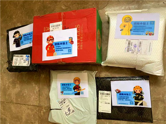 據(jù)了解,該支隊(duì)將“11·9”消防宣傳月及“雙十一”電商集中促銷活動(dòng)緊密結(jié)合,圍繞消防宣傳“進(jìn)家庭”為重點(diǎn),充分發(fā)揮郵政、申通、中通、圓通等快遞行業(yè)物流量大、流動(dòng)性強(qiáng)、受眾面廣的特殊優(yōu)勢(shì),專門印制了一批消防安全提示卡通貼紙,將其張貼在每一件快遞包裹上,再由快遞小哥“兼職”消防宣傳員送入千家萬(wàn)戶,讓市民們潛移默化中掌握一些必要的消防安全常識(shí),進(jìn)一步提升自我消防安全意識(shí)和自防自救能力。