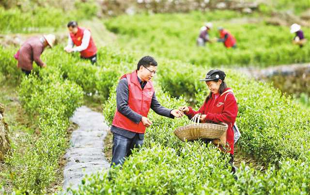 3月28日,豐都縣雙龍鎮(zhèn)茶園首次進(jìn)入采摘期,當(dāng)?shù)?00多戶村民預(yù)計(jì)增收480萬(wàn)元。該鎮(zhèn)探索“公司+支部+合作社+農(nóng)戶”黨建引領(lǐng)產(chǎn)業(yè)發(fā)展新模式,成立26個(gè)茶產(chǎn)業(yè)發(fā)展先鋒隊(duì),176名黨員干部擔(dān)任先鋒隊(duì)員,主動(dòng)認(rèn)領(lǐng)茶葉監(jiān)管責(zé)任田,全過(guò)程參與茶葉栽植、除草、施肥、修枝整形等各個(gè)環(huán)節(jié)監(jiān)督管理,以黨員干起來(lái)帶領(lǐng)群眾干起來(lái)。僅三年時(shí)間,雙龍鎮(zhèn)就新發(fā)展茶葉6000畝,初步建成豐都最大規(guī)模茶產(chǎn)業(yè)示范園,實(shí)現(xiàn)經(jīng)濟(jì)效益、生態(tài)效益雙提升。圖為黨員先鋒隊(duì)成員正在茶園培訓(xùn)村民采茶。
