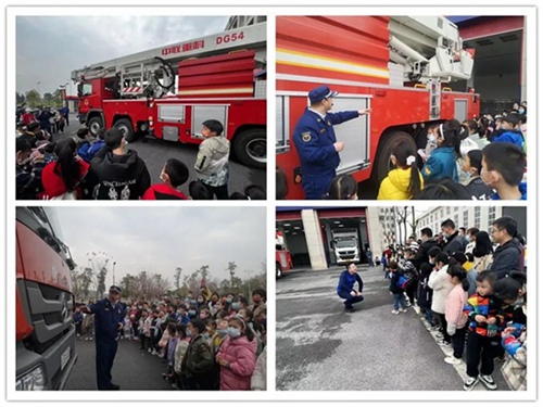 體驗環(huán)節(jié)結束后,消防救援人員帶領孩子們參觀了科普教育館,結合館內設施、火災案例向師生、家長詳細耐心了消防的發(fā)展歷程、火災的危險性、火災的分類、滅火器的使用、如何消除身邊火災隱患、如何正確報火警、如何撲救初起火災、如何從火場逃生自救等知識。
