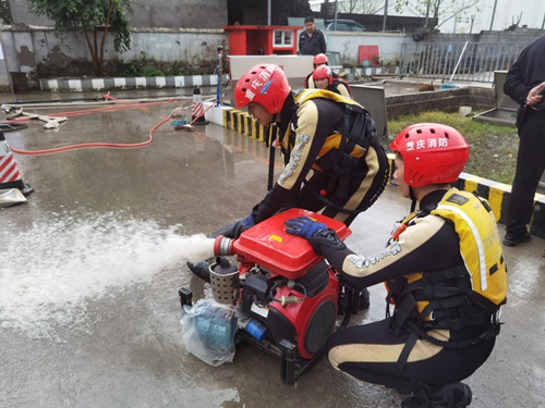 消防員使用手抬機(jī)動(dòng)泵排水。涪陵消防供圖 華龍網(wǎng)-新重慶客戶端 發(fā)