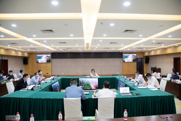 辦公會上,參會者通過無人機(jī)云直播了解項(xiàng)目建設(shè)動態(tài)。重慶經(jīng)開區(qū)供圖