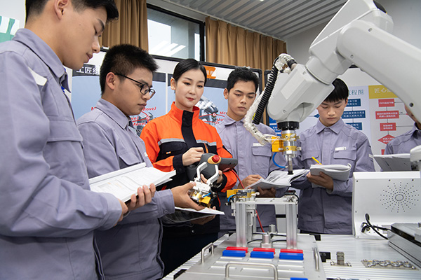 據(jù)了解,《基于視覺識別的裝配機器人應(yīng)用編程》這門課程一方面實現(xiàn)了學生所學與企業(yè)所需高度匹配,解決了校企合作中學校熱企業(yè)冷的痛點。該課程精準對接企業(yè)崗位需求,培養(yǎng)企業(yè)準員工,縮小了育人目標與企業(yè)崗位需求的差距。每到畢業(yè)季,各大智能制造企業(yè)提前“預(yù)定”工業(yè)機器人技術(shù)專業(yè)的畢業(yè)生,達到了“供不應(yīng)求”的程度。此外,通過比賽,參賽團隊帶動了更多的老師在日常教學中深入研究專業(yè)教學,在教學中取長補短、相互學習,在感悟與體驗中實現(xiàn)教學理念與教學實踐的飛躍。“比賽的目的不單單是獲獎,更重要的是提升視野、打開思路、拓寬教育教學理念,實現(xiàn)以賽促教、教學相長!绷貉嗾f。