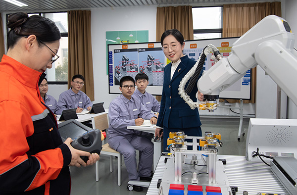 梁燕講解如何準確控制機械手臂姿態(tài)。重慶工程職業(yè)技術(shù)學院供圖
