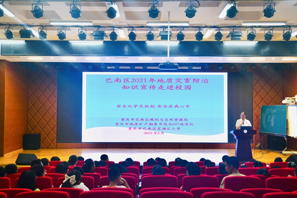 607地質(zhì)隊駐守隊員呂友賀為巴南區(qū)星瀾匯小學的師生們講解地質(zhì)災害防治知識。(資料圖)607地質(zhì)隊供圖