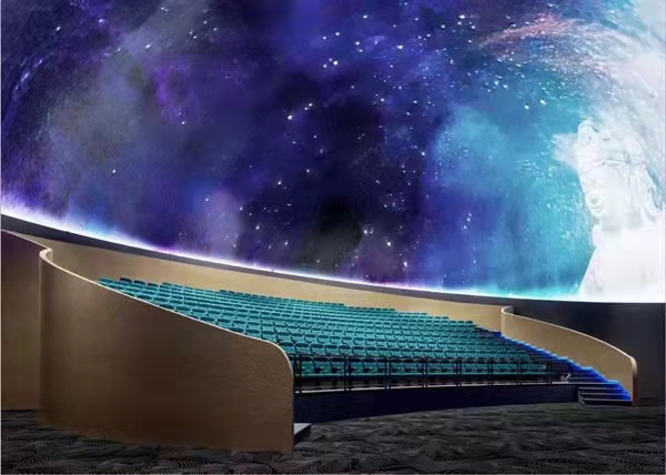 游客中心主體建筑分為地上兩層、地下一層,其中 最引人關(guān)注的是兩個按照300人觀影標(biāo)準(zhǔn)建設(shè)的8k球幕影院和4k寬銀幕影院。中心投用后,每天將定時放映7場次大足石刻特種電影《天下大足》和《大足石刻》。