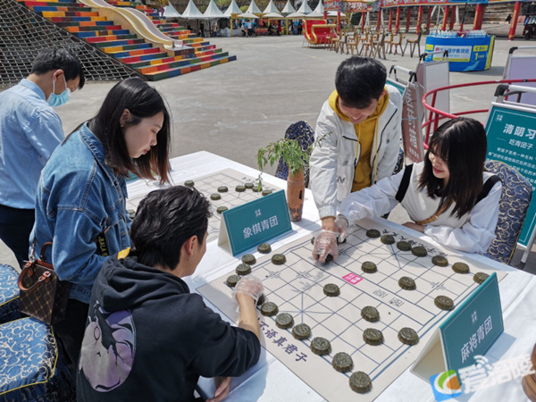 象棋青團(tuán)、麻將青團(tuán)、青團(tuán)糖葫蘆、青團(tuán)炸串、小花青團(tuán)……當(dāng)日中午,在美心紅酒小鎮(zhèn)景區(qū)紅酒廣場(chǎng), 各種造型的青團(tuán)美食,吸引了眾多游客爭(zhēng)相品嘗。尤其是象棋青團(tuán),不僅可以吃,還可以下象棋,更是吸引了大家的目光,紛紛上前一試。