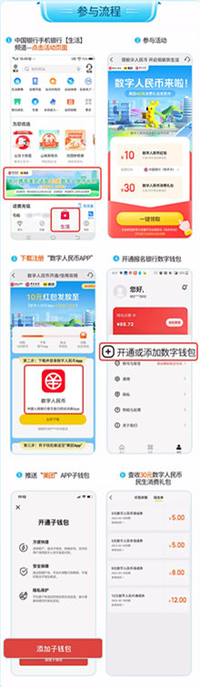 據(jù)介紹,今年6月30日前,通過中國銀行手機銀行“生活”頻道點擊“中行攜手美團送您40元數(shù)字人民幣禮包”活動頁面報名參與活動。下載“數(shù)字人民幣(試點版)”APP,注冊開通中國銀行數(shù)字人民幣錢包,即可獲得10元數(shù)字人民幣紅包,可在美團外賣、單車等多場景使用;在“數(shù)字人民幣(試點版)”APP完成“美團”子錢包推送,即可獲得美團APP發(fā)放的合計30元數(shù)字人民幣優(yōu)惠支付券,券包有效期為領取后60天;用戶完成“低碳行為”任務可繼續(xù)返隨機數(shù)字人民幣紅包?!暗吞夹袨椤卑T美團單車、點外賣不要餐具、優(yōu)選自備購物袋、網(wǎng)購火車/飛機票等,詳見活動頁面“賺數(shù)幣攻略”。紅包有效期至2022年6月30日。本次活動僅限重慶地區(qū),以報名時美團APP定位為準,且活動名額有限,滿額即止。(中國銀行重慶市分行)