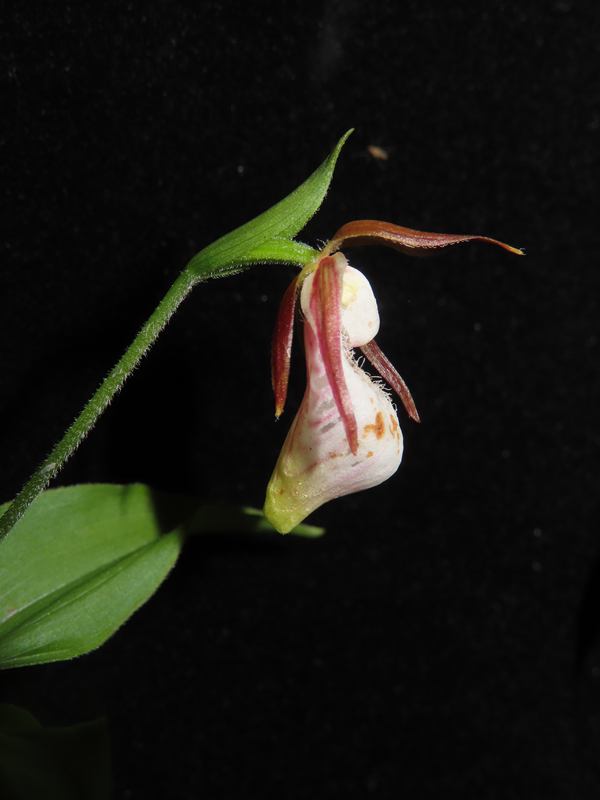 離萼杓蘭為蘭科杓蘭屬物種,主要集中分布在云南、四川、西藏等地。離萼杓蘭植株較小,側(cè)萼片完全離生,唇瓣白色而有粉紅色暈,深囊狀,倒圓錐形,囊口周圍具短柔毛,花期4-6月。
