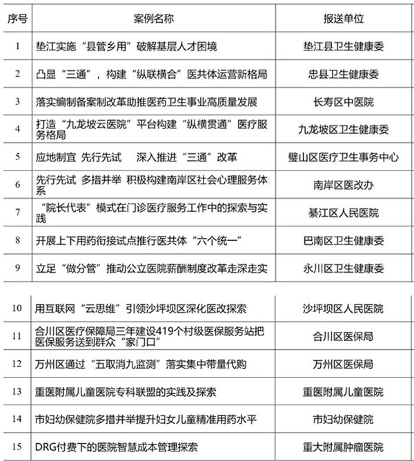重慶2021年度深化醫(yī)改典型案例發(fā)布
