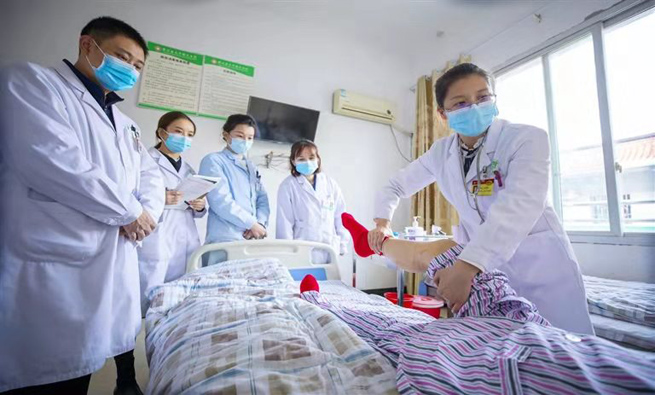 墊江縣“縣管鄉(xiāng)用”臨床醫(yī)師指導(dǎo)基層醫(yī)師教學(xué)查房。重慶市衛(wèi)健委供圖