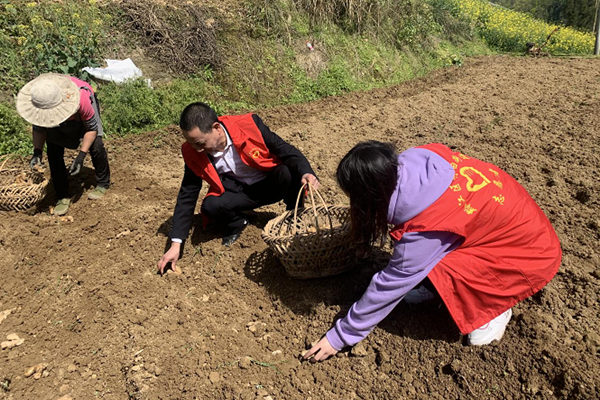 舟白街道新時代文明實(shí)踐所搶種小黃姜。黔江區(qū)委宣傳部供圖