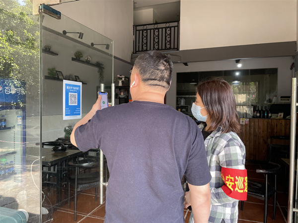 “阿姨,進(jìn)餐館也需要主動(dòng)出示渝康碼和掃描場(chǎng)所碼進(jìn)行登記,這樣才能確保大家安全出行,謝謝您的配合!”工作人員提醒居民出入公共場(chǎng)所進(jìn)行掃碼登記,并督促商家嚴(yán)格落實(shí)“兩碼查驗(yàn)+測(cè)溫”、消毒消殺等防疫措施,筑起疫情防控社區(qū)第一道防線,切實(shí)落實(shí)好各項(xiàng)防控措施,全力守護(hù)好社區(qū)居民生命安全。