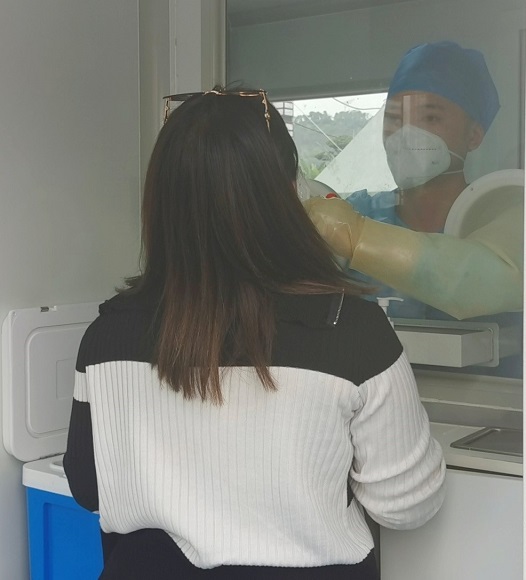 在不到10㎡左右的方艙內(nèi),包含了正負(fù)壓防護(hù)系統(tǒng)、空調(diào)系統(tǒng)、操作臺、休息區(qū)等,可謂“五臟俱全”!坝辛诉@個采樣艙,艙內(nèi)醫(yī)護(hù)人員無需穿著防護(hù)服,佩戴護(hù)目鏡,即可通過密閉的橡膠手套進(jìn)行采樣操作,實(shí)現(xiàn)與受檢人員‘零接觸’隔離采樣!毕蜓嗲锝榻B,里面還配有空調(diào)系統(tǒng),即使在高溫天氣的炙烤下,也能夠讓醫(yī)護(hù)人員和旅客涼爽地進(jìn)行檢測,提升了核酸檢測的舒適性。