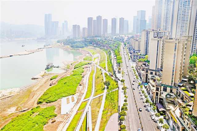 4月10日,北濱二路江灘公園進入收尾施工階段,工人們正加緊景觀步道欄桿安裝和消落帶芒草栽植,預(yù)計5月底向市民開放。據(jù)了解,該公園起于江北梁沱止于塔子山觀音寺,全長約3公里,是重慶兩江四岸品質(zhì)提升節(jié)點性工程,目前已完成景觀道、健身道、江灘慢步道、親水步道、觀景臺及護坡岸線等施工。特約攝影 鐘志兵/視覺重慶