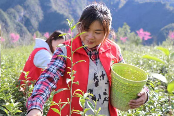 “手腳麻利的每天可收入150元以上,慢一點的也有七八十!标柟庀拢瑏碜源筇链宓牟刹韫ぴ喯阋荒樝矏,她說:“一個上午時間,自己就采了一斤半茶葉,全天可以采兩三斤,這樣算下來,每年可以增加收入5000元左右。”