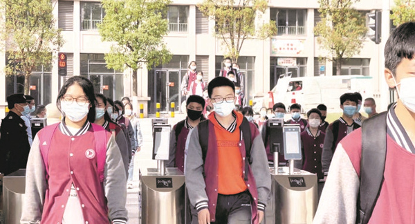 三峽初中學(xué)生走進(jìn)校園。吳雅嬌攝