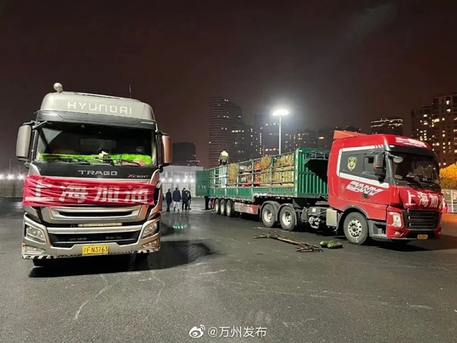 萬州區(qū)第一批援滬物資已于4月1日凌晨抵達上海,送到了急需的居民手中。第二批物資,根據(jù)需要啟用冷藏車運輸。