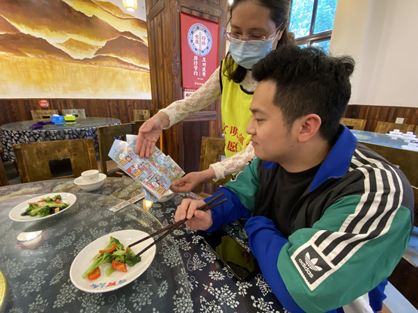 店員引導(dǎo)顧客文明用餐。龍山街道供圖