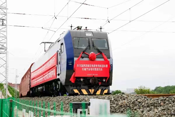 隨著一聲汽笛長(zhǎng)鳴,一輛列車緩緩駛出。4月14日,永川區(qū)投資建設(shè)的永川國(guó)家高新區(qū)鐵路專用線正式通車運(yùn)行,由永川欄桿灘火車站發(fā)往華北地區(qū)的首發(fā)專列正式發(fā)車。這是永川區(qū)著力解決園區(qū)企業(yè)物流成本高、運(yùn)輸效率低等問(wèn)題,在優(yōu)化營(yíng)商環(huán)境中使出的硬招,把貨運(yùn)鐵路修到了產(chǎn)業(yè)園。