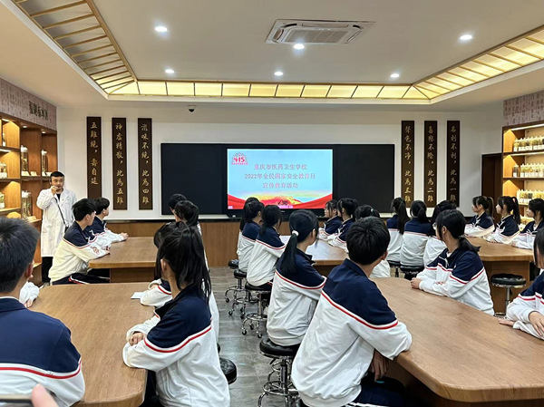 15日上午,在重慶市醫(yī)藥衛(wèi)生學(xué)校中藥館里,一場(chǎng)特別的藥品安全課堂正在進(jìn)行中。來自該校藥劑專業(yè)的30多名學(xué)生正在老師的帶領(lǐng)下,通過播放宣傳片、展示中藥標(biāo)本、體驗(yàn)VR場(chǎng)景等形式,給學(xué)生們講解藥品安全知識(shí),大家積極參與互動(dòng)問答,圍繞藥品安全知識(shí)展開激烈討論。