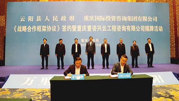 4月14日,重慶投資咨詢集團與云陽縣人民政府舉行《戰(zhàn)略合作框架協(xié)議》簽約儀式暨重慶重咨興云工程咨詢有限公司揭牌活動,共同促進云陽縣優(yōu)化經濟結構、實現高質量發(fā)展以及共同打造區(qū)域性咨詢服務產業(yè)發(fā)展新高地。