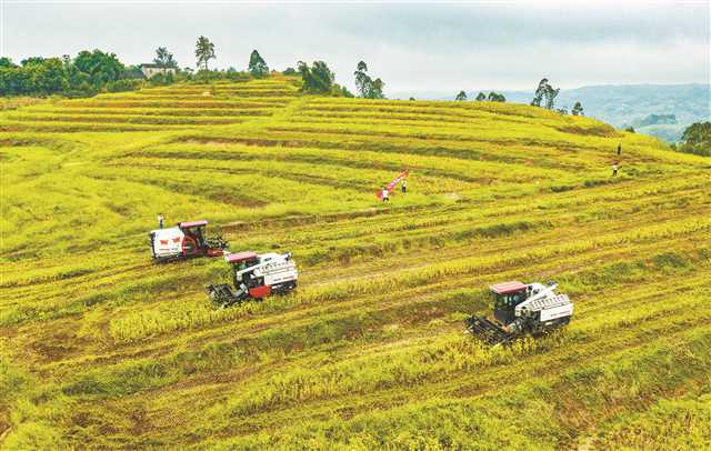 如何打破山地局限,確保糧食安全?近年來,我市以農田宜機化改造為抓手,改善耕作條件,盤活撂荒地,進而擴大糧食種植面積,提高單產效益。截至去年底,全市累計建成高標準農田1498萬畝,配合半自動履帶式拖拉機、稻麥聯(lián)合收割機等適地農機的研發(fā)投用,實現(xiàn)畝均增收近200元。