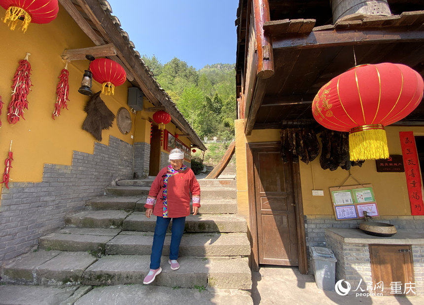 在公路邊下車,走過一段潔凈平整的石板路,便到了89歲村民馬培清老人的家。滿頭銀發(fā)、身著土家族服飾的馬培清正從外面散步回來。“快,院里坐?!边~步下石階的老人精神矍鑠,熱情地招呼記者。
