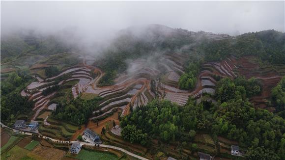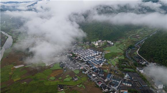 鄉(xiāng)村田園云霧景觀。通訊員 胡程 攝