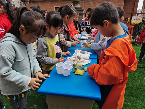 孩子們?cè)诨顒?dòng)中種植綠植;嘏d街道供圖