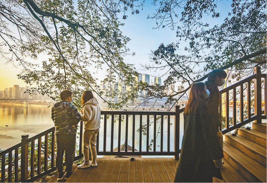 渝中區(qū)戴家巷崖壁步道,市民正在步道上游玩,觀嘉陵江景。(資料圖片)首席記者 龍帆 攝/視覺重慶